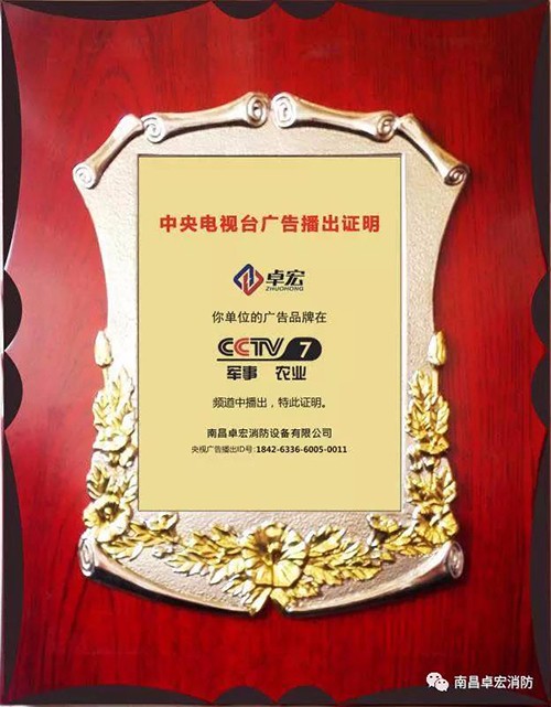 2018年八月份,南昌卓宏消防设备品牌广告已正式登录频道,关注卓宏消防品牌的朋友,可以在频道的广告期间看到卓宏消防设备的实力与风采。